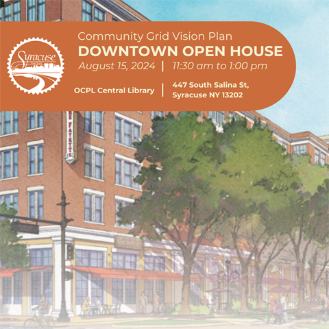 The open house on Monday, August 19 will continue the conversation with residents and community stakeholders on the Community Grid Vision Plan, a multi-decade look ahead at how Syracuse can maximize the positive impact of the Interstate 81 Viaduct Project on neighborhoods and mobility.